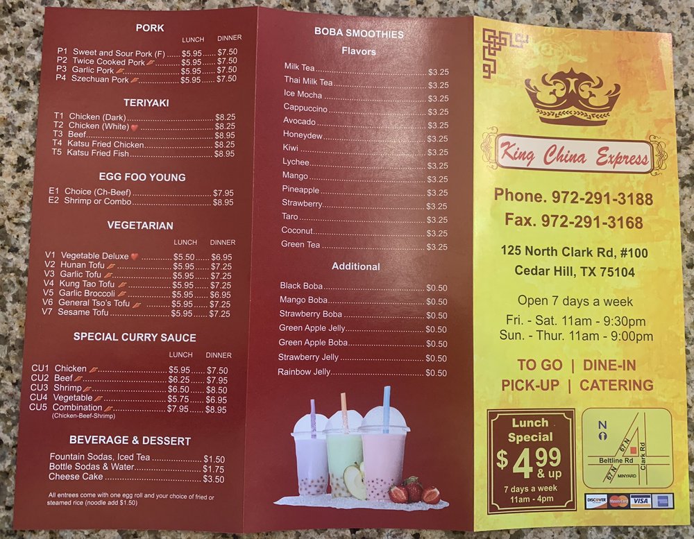 Welcome to King China Express, a vibrant gem in Cedar Hill, TX, where authentic Chinese cuisine meets modern convenience. The menu is a delightful fusion of traditional flavors and contemporary twists, ensuring every plate is a feast for both the eyes and the palate.
